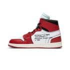 Співпраця Off-White і Jordan Brand у 2017 році стала однією з найочікуваніших у світі кросівок. Це була перша спільна робота Вірджила Абло, засновника модного дому з Мілана, та легендарного бренду. Модель, відома як “The 10”, отримала класичне забарвлення Chicago – білий, чорний і червоний. Верх виконаний із розібраної на деталі шкіри, а на медіальній стороні замість Swoosh розміщений напис: “Off-White for Nike Air Jordan 1, Beaverton, Oregon, USA © 1985”. Серед ключових елементів – м’який комір із прихованим написом “85”, збільшений зміщений Swoosh на зовнішній стороні, “Air” на підошві та шнурки з написом “Shoelaces”.